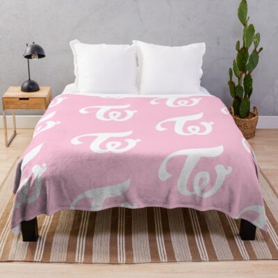 TWICE Kpop Girl Group Pink Collage Design Throw Blanket