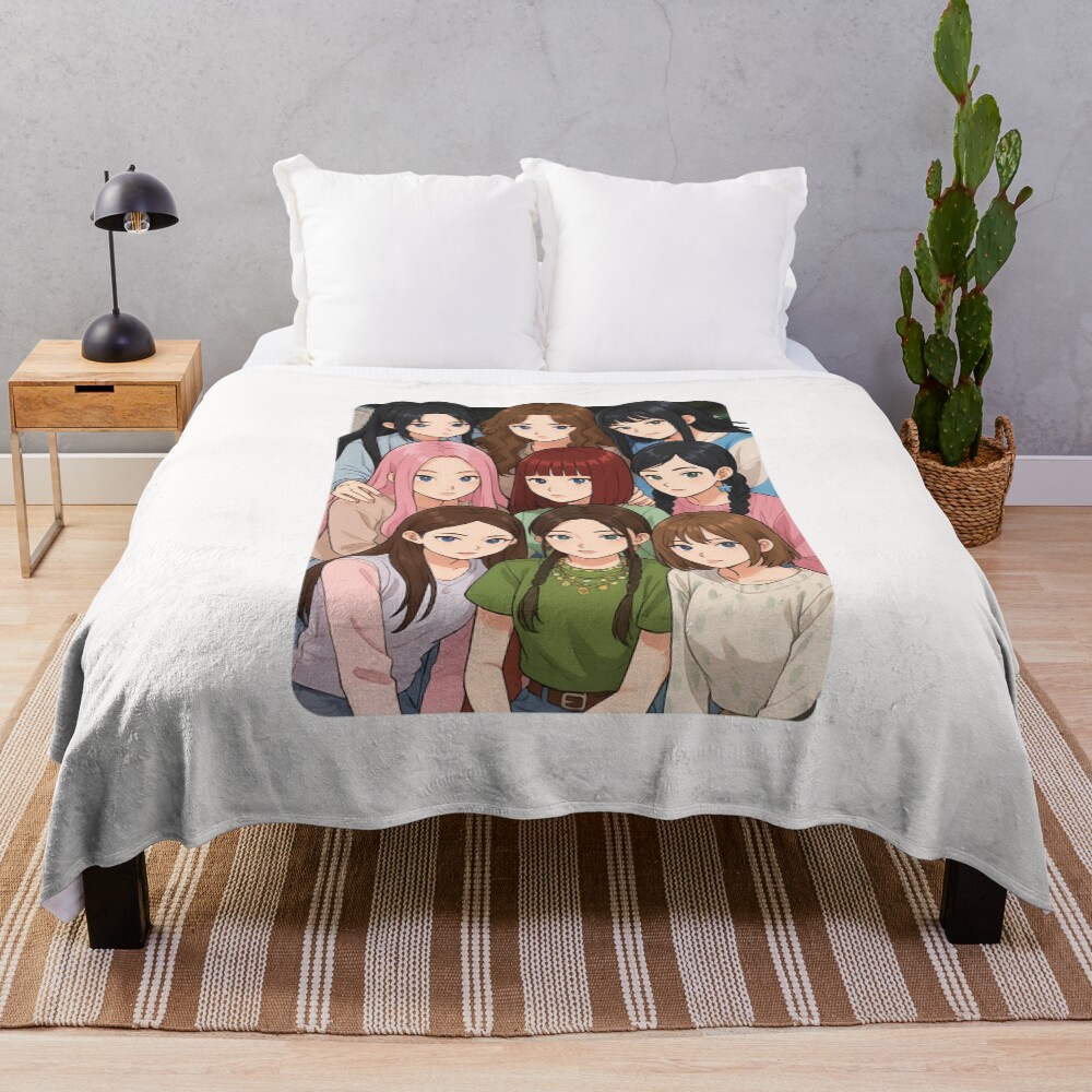 TWICE Cartoon Illustration Collage K Pop Group Throw Blanket
