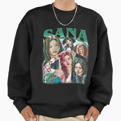 TWICE Sana Kpop Girl Group B N W Collage Design K Music South Korean Scrapbook Collage Cozy Y2k Vintage Design Sweatshirt