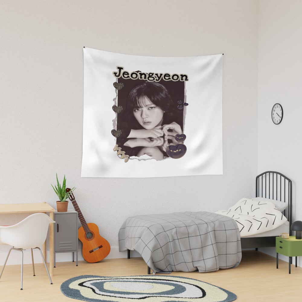 TWICE Jeongyeon Kpop Girl Group Golden Collage Design K Music South Korean Scrapbook Collage Cozy Y2k Vintage Design Tapestry