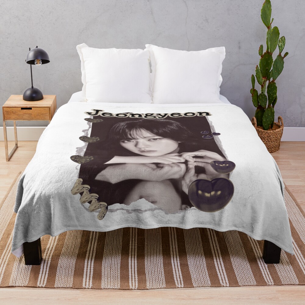 TWICE Jeongyeon Kpop Girl Group Golden Collage Design K Music South Korean Scrapbook Collage Cozy Y2K Vintage Design Throw Blanket