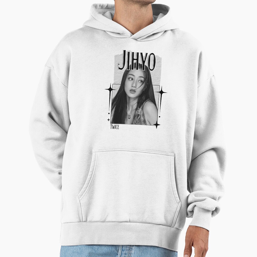 TWICE Jihyo Kpop Girl Group B N W Collage Design K Music South Korean Scrapbook Collage Cozy Y2k Vintage Design Hoodie