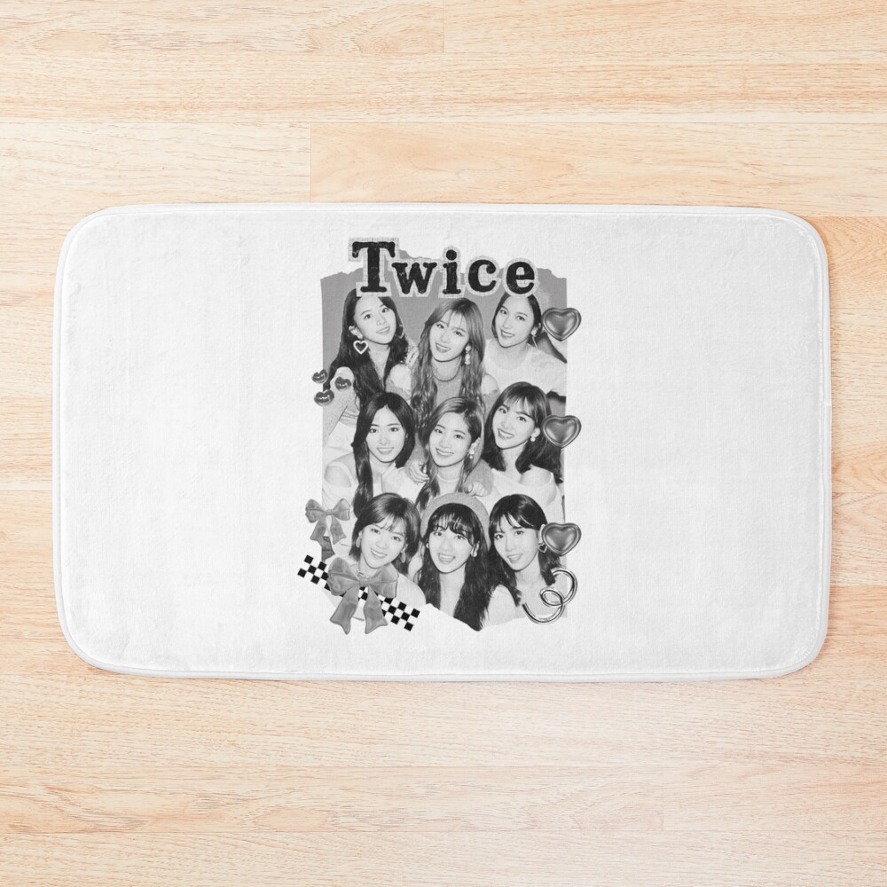 TWICE Kpop Girl Group K Music South Korean Girl Group Black And White Collage Digital Art Portrait Bath Mat