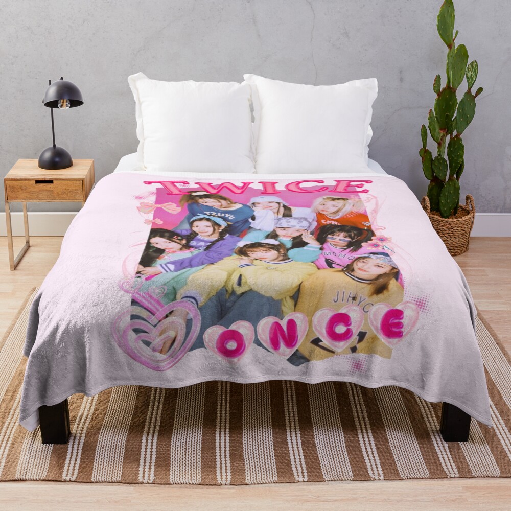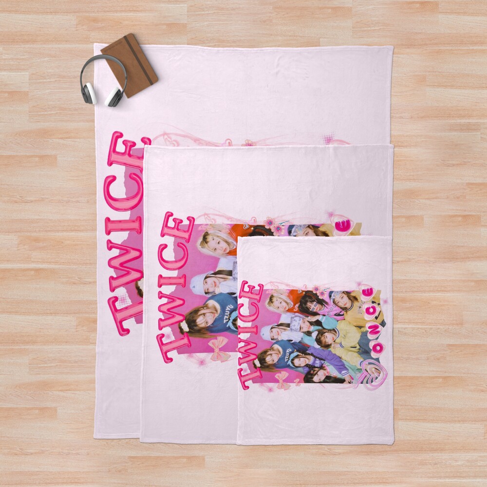 TWICE Kpop Girl Group Pink Collage Design Throw Blanket