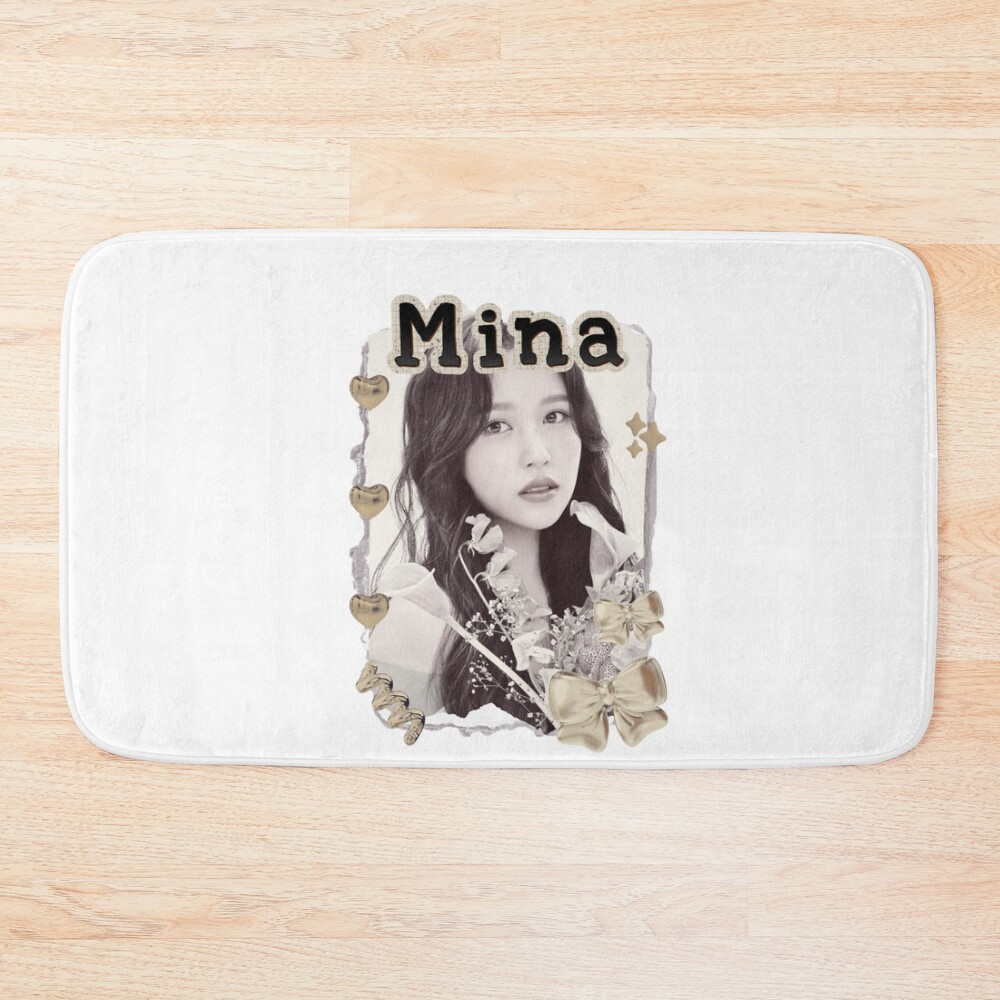TWICE Mina Kpop Girl Group Golden Collage Design K Music South Korean Scrapbook Collage Cozy Y2K Vintage Design Bath Mat