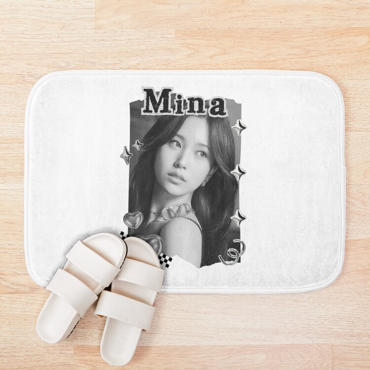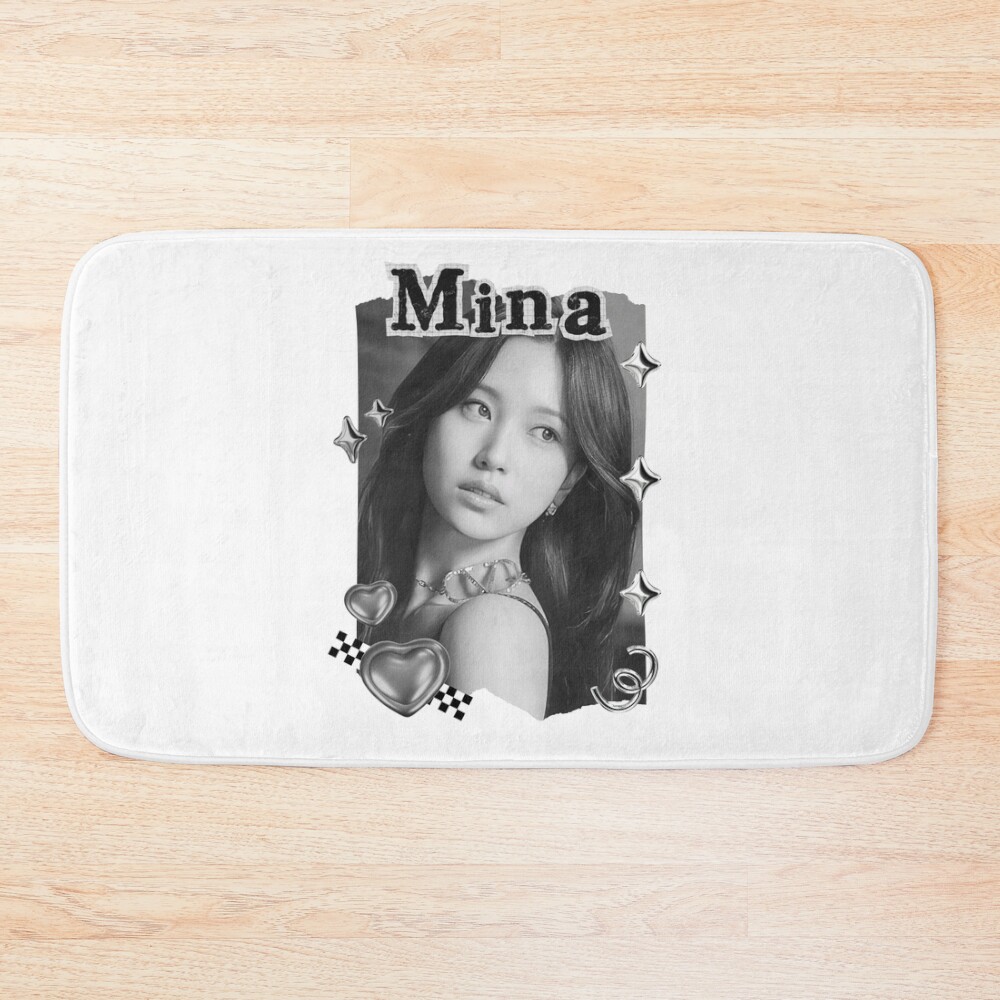 TWICE Mina Kpop Girl Group K Music South Korean Girl Group Black And White Collage Digital Art Portrait Bath Mat