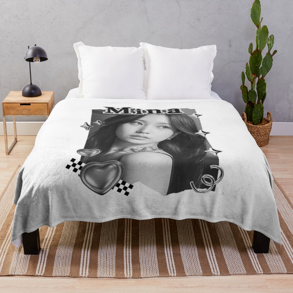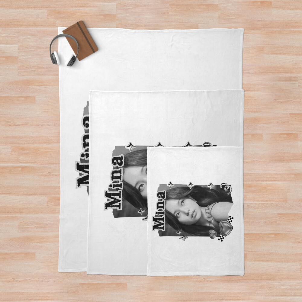 TWICE Mina Kpop Girl Group K Music South Korean Girl Group Black And White Collage Digital Art Portrait Throw Blanket