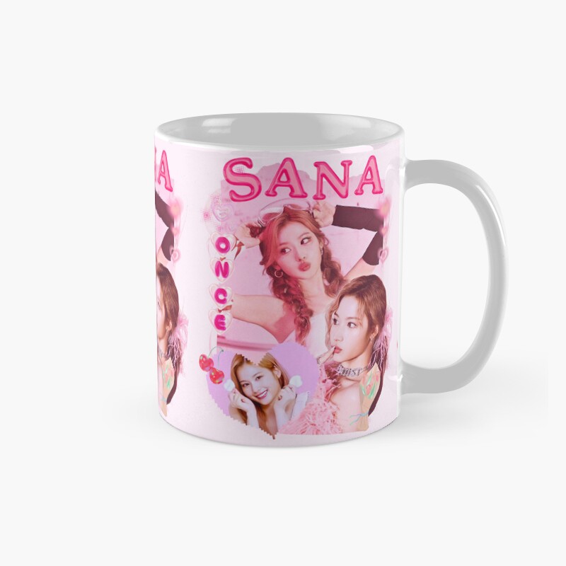 TWICE Sana Kpop Girl Group Pink Collage Design With Member Names Mug