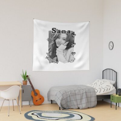 TWICE Sana Kpop Girl Group K Music South Korean Girl Group Black And White Collage Digital Art Portrait Tapestry