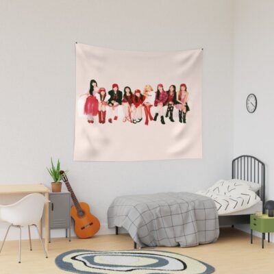 TWICE Kpop Girl Group K Music South Korean Girl Group Red Aesthetic Collage Design Tapestry